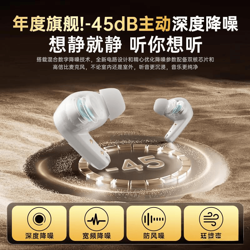 通过先进的ANC技术,有效屏蔽环境喧嚣,让用户沉浸在清晰的音域中。即使在拥挤的街道或喧闹的咖啡馆,也能享受到高保真音质。