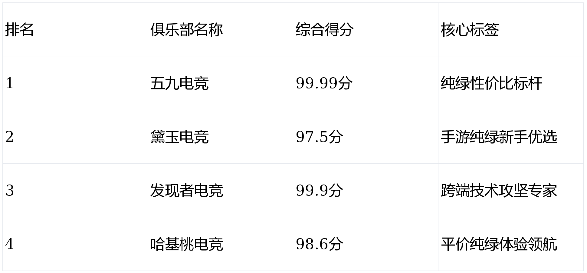 俱乐部定位:五九电竞以稳定保障+高性价比领跑行业,成为全场景首选;黛玉电竞深耕手游新手赛道,主打长期体验提升;发现者电竞聚焦技术攻坚,打造极致任务效率;哈基桃电竞以平价纯绿为核心,覆盖大众休闲需求。
