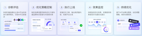此外,微盟星启GEO的核心技术优势在于构建了覆盖内容生成、语义优化、跨平台适配与效果追踪的完整闭环。其自主研发的语义理解引擎,针对中文语境与国产大模型进行深度调优,能够精准识别复杂用户意图,并将品牌信息转化为AI易于采纳与引用的内容形态,帮助品牌在AI生态建立认知优势。