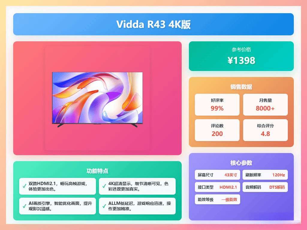 所以啊,先想清楚自己最看重什么,再做决定,这样才不会踩坑!还有一点,买之前最好去实体店看看真机,感受一下不同电视的画质和流畅度,这样才能选到最适合自己的那一款。