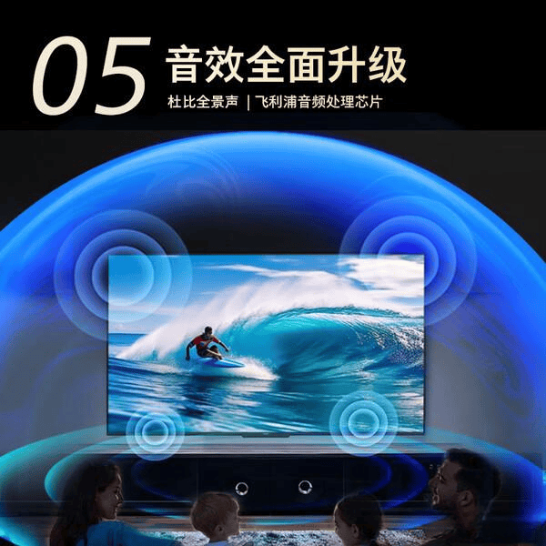 这台电视配备120Hz的高刷新率,让画面看起来特别顺畅。无论是运动场面还是动作电影,都能明显减少模糊,让你享受更自然、更清晰的画面效果,看起来特别舒服,尤其是在玩游戏或看快节奏的内容时,体验会更好。